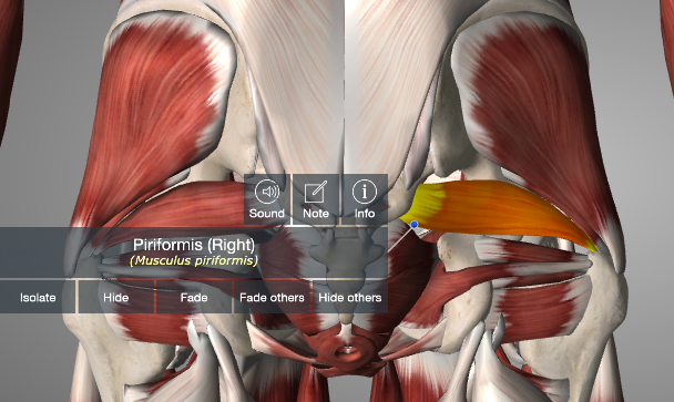 Mięsień gruszkowatyMięsień gruszkowaty należy do grupy tylnej mięśni grzbietowych obręczy kończyny dolnej. Posiada spłaszczony, trójkątny kształt i rozpina się między kością krzyżową, a krętarzem większym kości udowej.